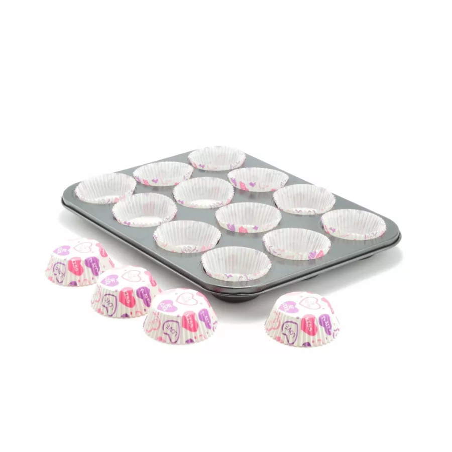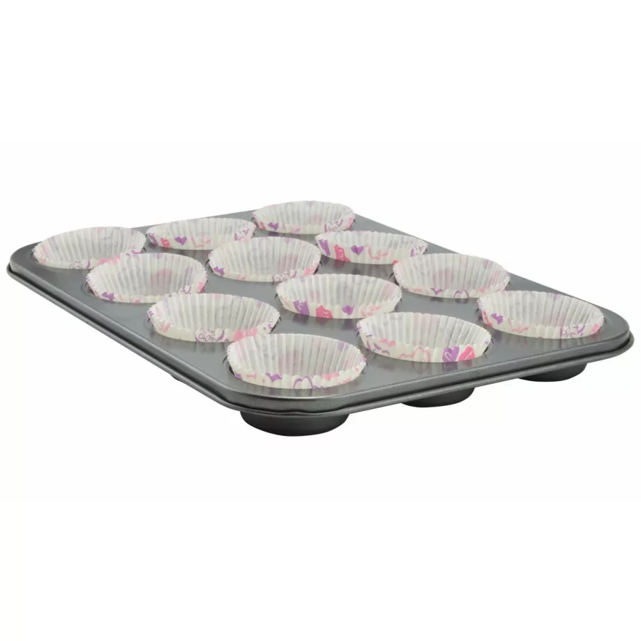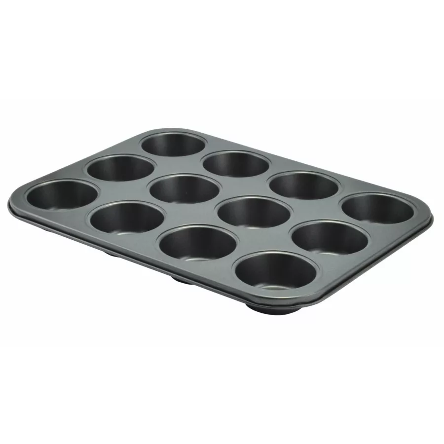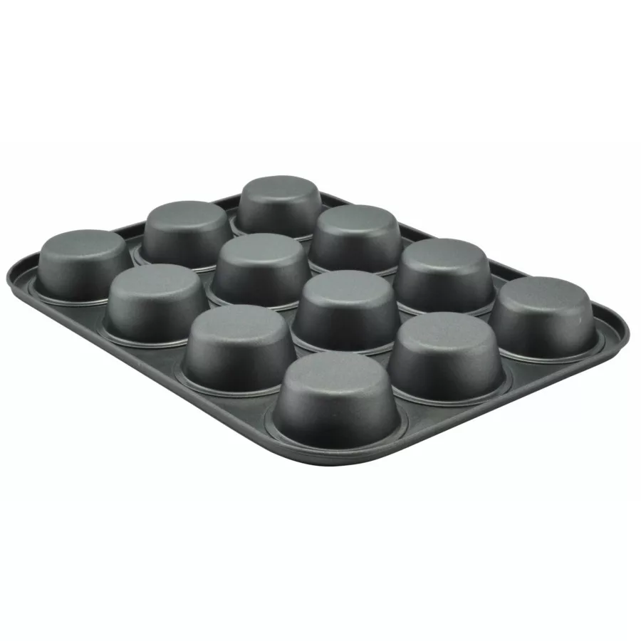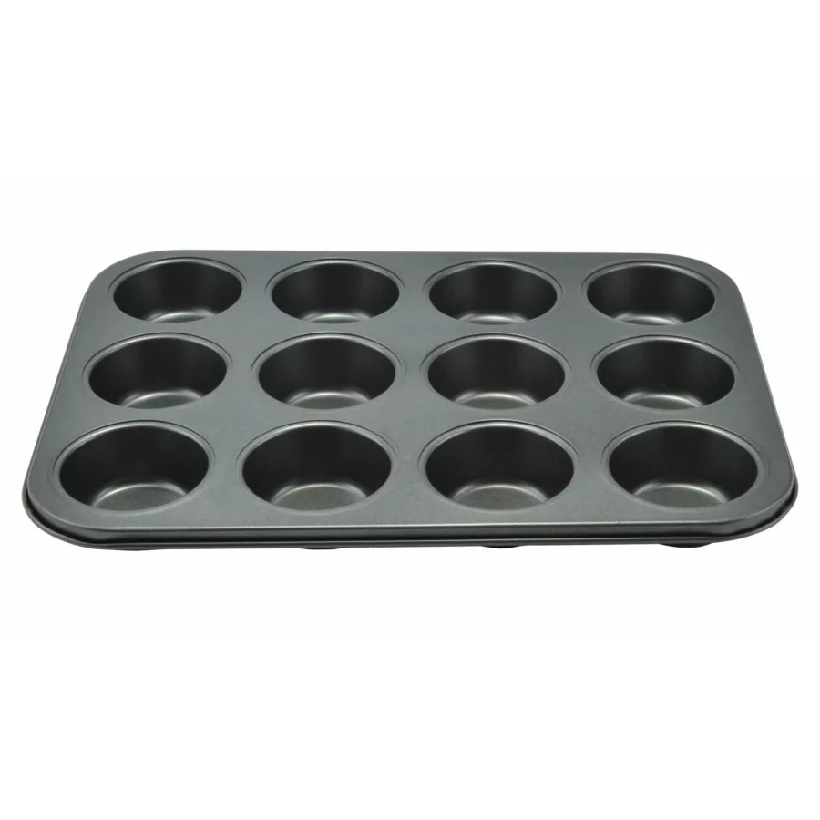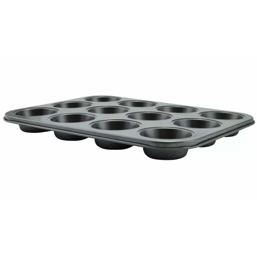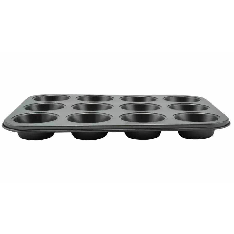 Készíts ínycsiklandó muffinokat gyorsan és egyszerűen! 12 részes muffinsütőnk segítségével könnyedén elkápráztathatod családodat, barátaidat a finomságokkal. Anyaga: tapadásmentes bevonattal ellátott acél. Méretei: 35,5*26,5*3 cm; sütiforma mérete: 6,5 cm átmérőjű, 3 cm mély. Használható: gáz-, illetve elektromos sütőben. Figyelem! Sütéskor fa vagy műanyag, illetve szilikon eszközöket használj, a fém eszközök megsérthetik a bevonatot!