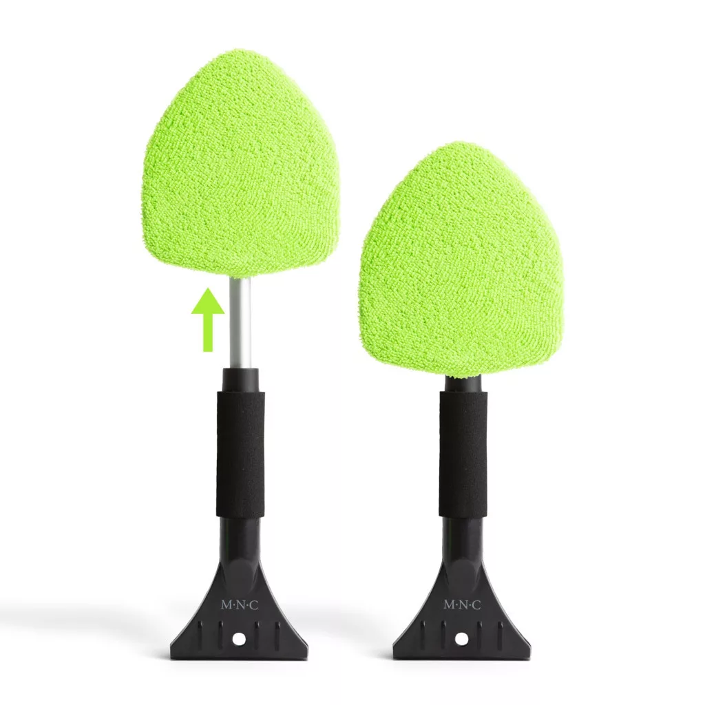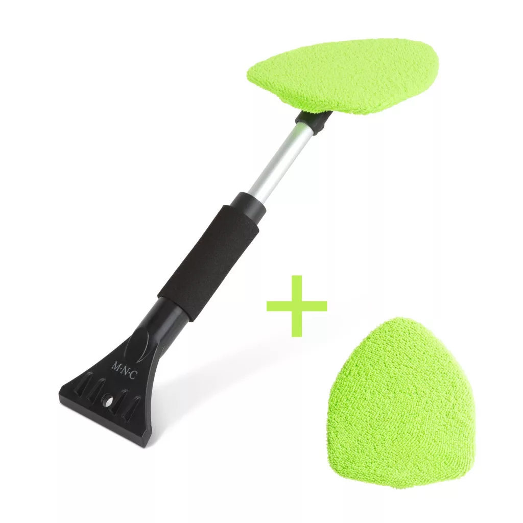 Nélkülözhetetlen eszköz minden autós számára ez a multifunkciós ablaktisztító. A hideg időjárás okozta jégképződésre és páralecsapódásra is kiváló megoldást nyújt. A teleszkópos markolat egyik végén egy vastag, strapabíró műanyagból készült jégkaparót talál, míg az eszköz másik végén egy 180°-ban forgatható fejet textilt huzattal. Utóbbi kiválóan alkalmas a belső térből lecsapódó nedvesség letörlésére. A teleszkópos markolatot puha, csúszásmentes szivacs borítja.