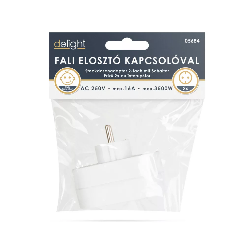 2-es fali elosztó, amely 2 eszköz egyidejű csatlakoztatását biztosítja a hálózathoz, így nem kell lemondania egyik eszközének használatáról sem. 2 db hagyományos aljzattal, például ideális lehet háztartásokba, irodákba. A gomb segítségével könnyen és gyorsan áramtalaníthatja eszközeit.