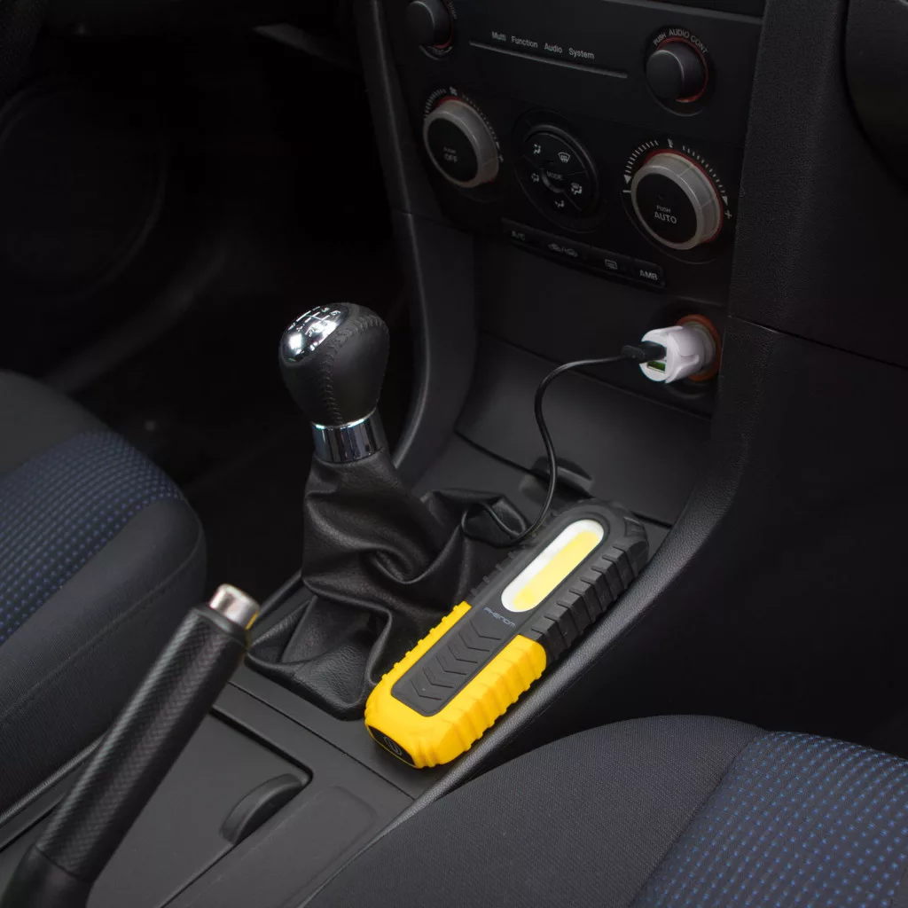 Kisméretű, mégis nagy fényerővel rendelkező munkalámpa. Nem hiányozhat egyetlen garázsból, műhelyből sem. A COB LED technológia bevilágítja a kívánt munkaterületet. Praktikus 360°-os akasztójának, kitámasztójának és mágneses rögzíthetőségének köszönhetően könnyen rögzítheti úgy, ahogyan éppen szüksége van fényforrásra. Bárhová magával viheti, könnyű súlyának és övcsipeszének köszönhetően. A SoftTouch műanyag borítás minden körülmény között csúszásmentes, stabil fogást biztosít. Kettő az egyben lámpa, a tetején LED zseblámpa funkcióval, az elején COB LED munkalámpával. Beépített Li-ion akkumulátora környezetbarát eszközzé teszi, amely hosszantartó fényerővel is rendelkezik.