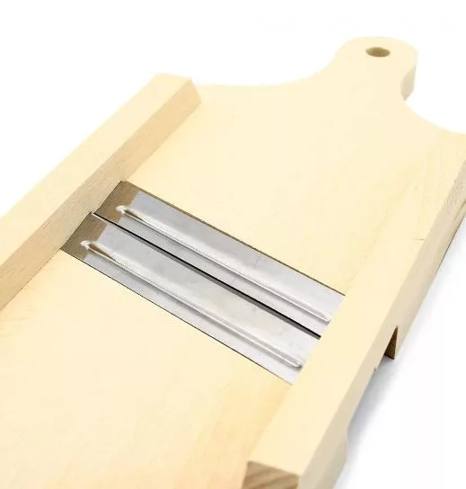 A rendkívül éles, két pengés kivitelnek köszönhetően hatékonyan és egyszerűen tudsz káposztát, uborkát vagy akár tököt gyalulni ezen a fából és fémből készült káposztagyalun.