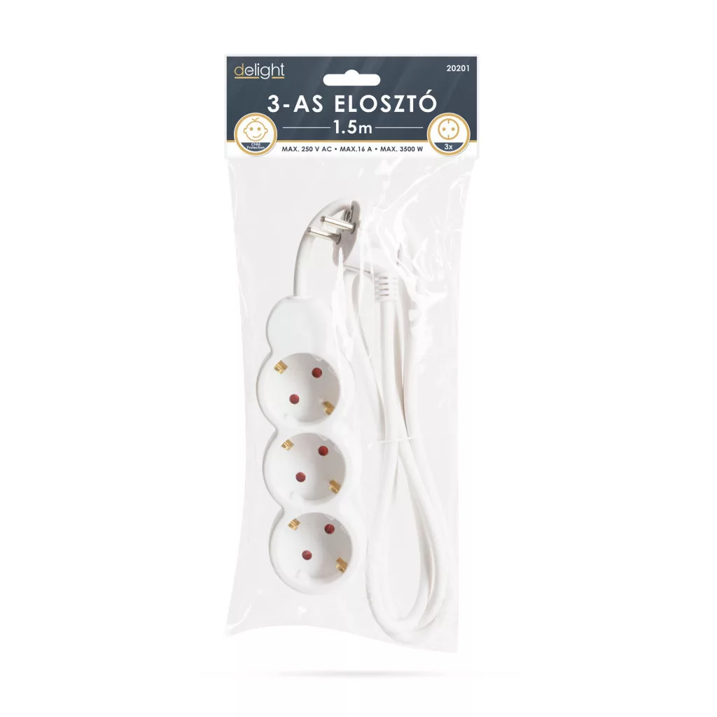 Általános, fehér elosztó, amely használata javasolt háztartásban, irodákban. Jó minőségű, vastag szigetelése megvédi a kábelt a sérülésektől, a kábel esetleges megtörésétől.