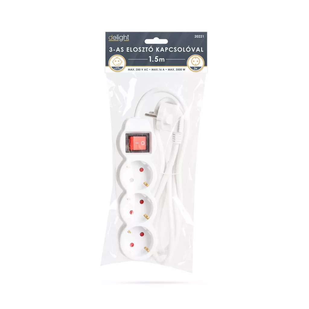 Általános, fehér elosztó kapcsolóval, amely használata javasolt háztartásban, irodákban. Jó minőségű, vastag szigetelése megvédi a kábelt a sérülésektől, a kábel esetleges megtörésétől.