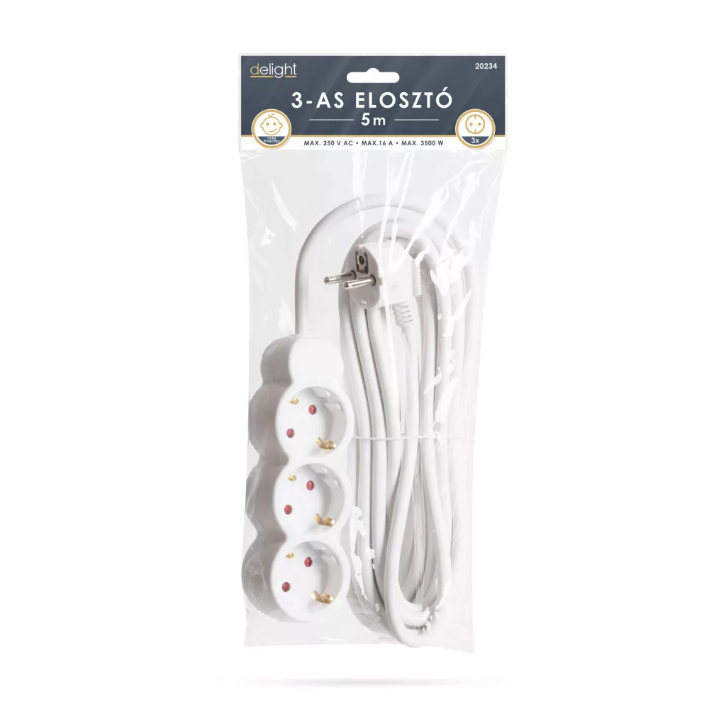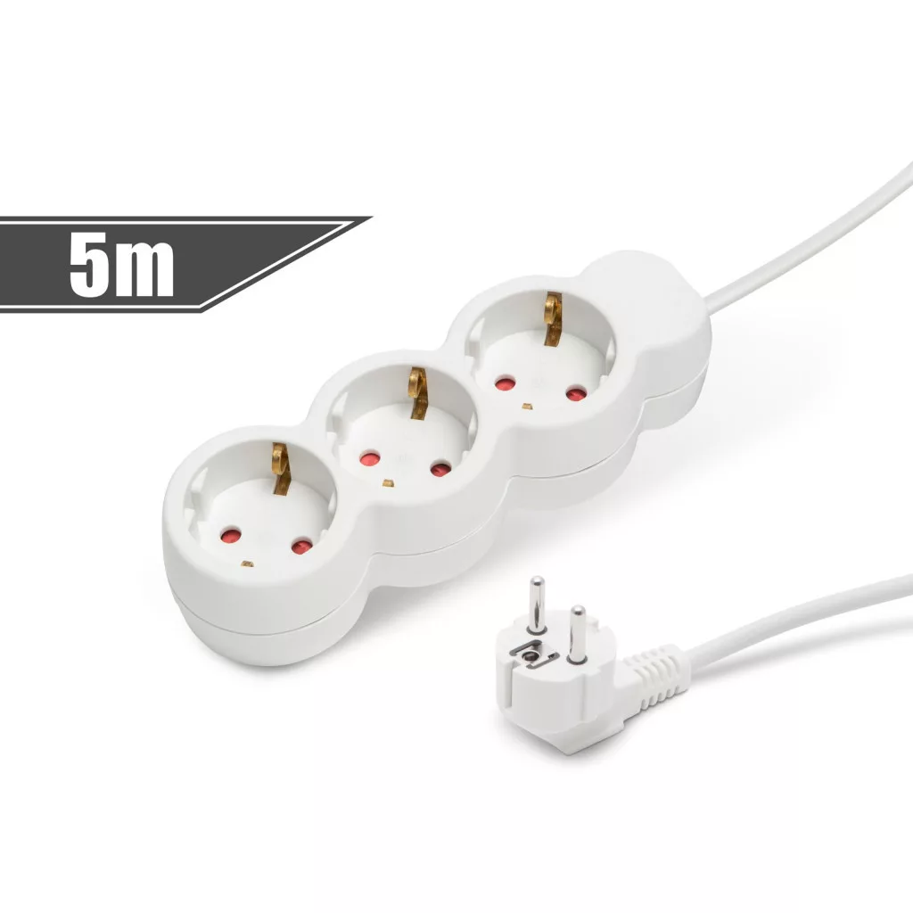 Általános, fehér elosztó, amely használata javasolt háztartásban, irodákban. Jó minőségű, vastag szigetelése megvédi a kábelt a sérülésektől, a kábel esetleges megtörésétől.