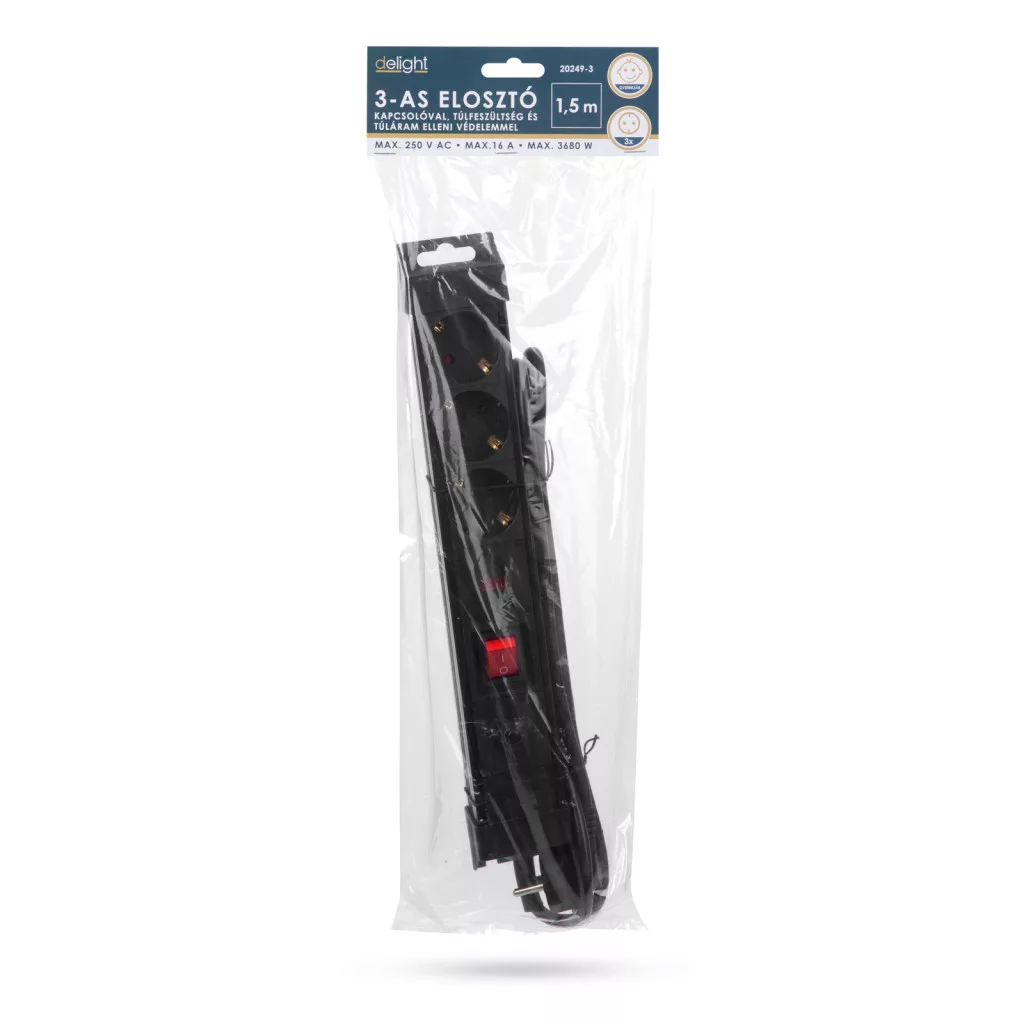 Általános, fekete, nagyméretű elosztó, amely használata javasolt háztartásban, irodákban. Jó minőségű, vastag szigetelése megvédi a kábelt a sérülésektől, a kábel esetleges megtörésétől. A hosszabbító házára feltekerhető a kábel.