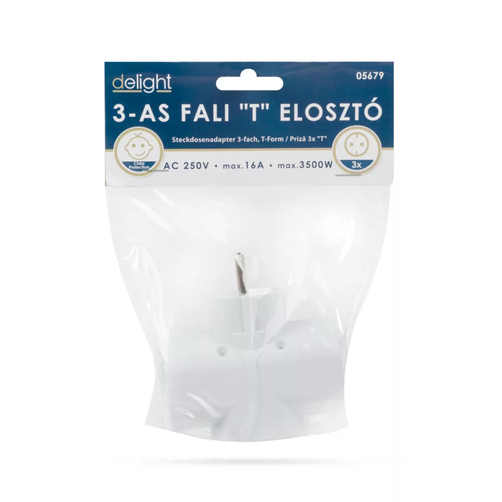 Klasszikus "T" elosztó, amely 3 eszköz csatlakoztatását biztosítja a hálózathoz, így nem kell cserélgetnie az eszközeit, egyidőben használhatja őket.