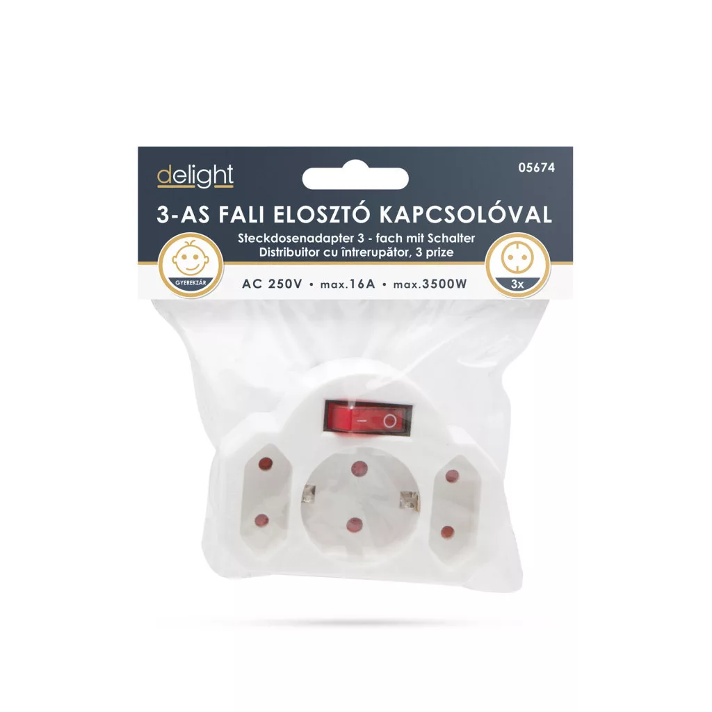 1 + 2-es fali elosztó, amely 3 eszköz egyidejű csatlakoztatását biztosítja a hálózathoz, így nem kell lemondania egyik eszközének használatáról sem. 1 hagyományos és 2 db EURO aljzattal, például ideális lehet konyha eszközök, telefontöltő csatlakoztatására. A gyors áramtalanítás érdekében kapcsolóval szerelt.