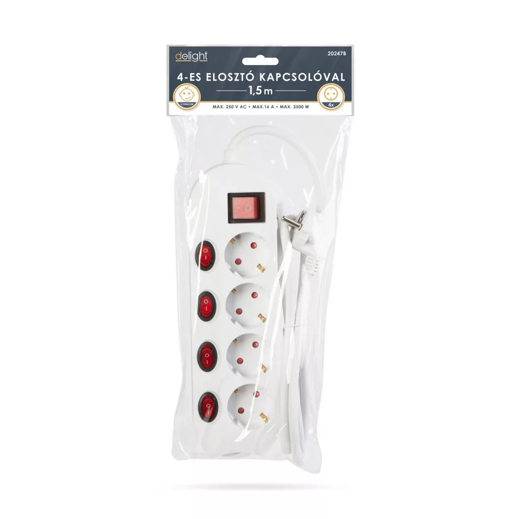 Általános, fehér elosztó, amely használata javasolt háztartásban, irodákban. Az aljzatok külön külön is kapcsolhatóak. Jó minőségű, vastag szigetelése megvédi a kábelt a sérülésektől, a kábel esetleges megtörésétől.