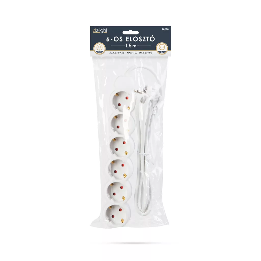 Általános, fehér elosztó, amely használata javasolt háztartásban, irodákban. Jó minőségű, vastag szigetelése megvédi a kábelt a sérülésektől, a kábel esetleges megtörésétől.