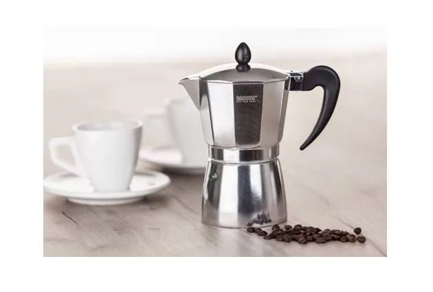Klasszikus "kotyogós" fém kávéfőző, mellyel egyszerre 6 adag kávét tudsz lefőzni. Űrtartalma 260 ml.