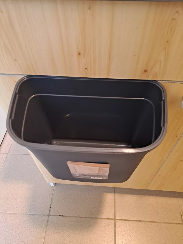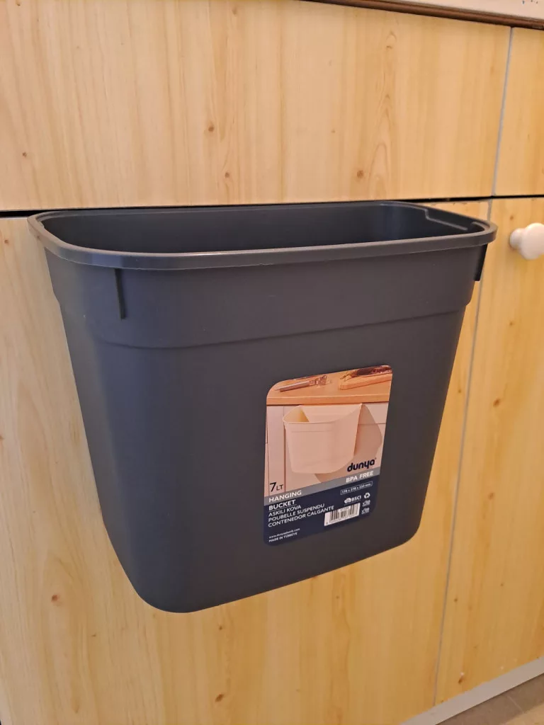 Ajtóra akasztható 7 L-es szemetes. Az akasztható szemetesek praktikusan használhatóak konyhában és fürdőszobában. A széles szájrésznek köszönhetően könnyen beleseperhető akár a főzés során keletkezett hulladék.
