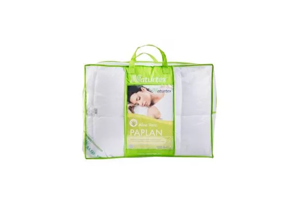 Selymes tapintású, puha paplant keresel? Akkor válaszd a Natur-Tex aloe-vera kivonattal kezelt mikroszálas takaróját! Az aloe-vera köztudottan nyugtató, sejtregeneráló hatású, így ez is hozzájárul a pihentető alváshoz! Kifejezetten ajánljuk, ha érzékeny a bőröd vagy allergiával küzdesz. Fedőanyag: fehér, Aloe Vera kikészítésű 100% poliészter mikrofiber. Töltet: 100% szilikonos poliészterszál. Csomagolás: zöld hordtáska. A termék 40°C-on, mosógépben mosható, könnyen kezelhető, formatartó. Méret: 200x220 cm, 650g.
