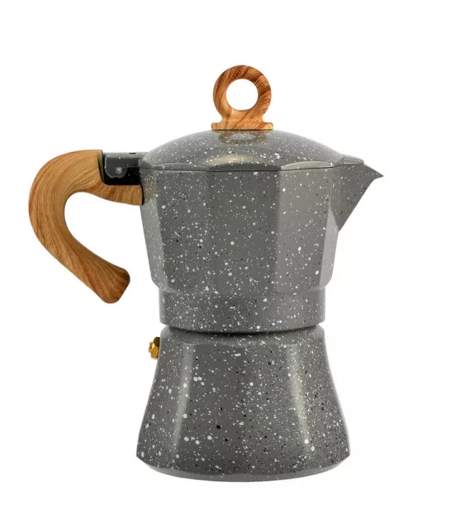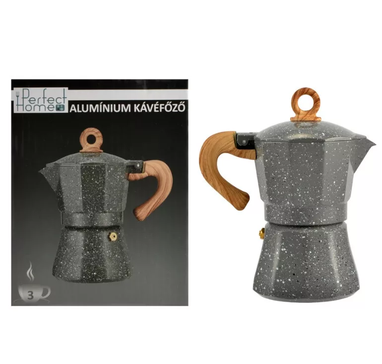 3 személyes Alumínium kávéfőző fa hatású nyéllel, szürke színben
