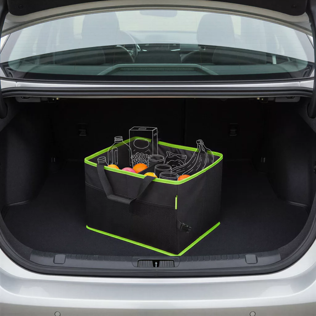 Önnek is sok bosszúságot okoznak a csomagtartóban fékezéskor, kanyarodáskor szabadon mozgó tárgyak? Ezzel a csomagtartóba tehető táskával ennek vége! Autós felszereléseit vagy akár a bevásárláskor vásárolt termékeket is kényelmesen tárolhatja benne, anélkül hogy ide-oda mozognának a csomagtartóban. Egy mozdulattal összecsukható, az oldalán található csatokkal és fogantyúval akár hordtáskaként is használható.