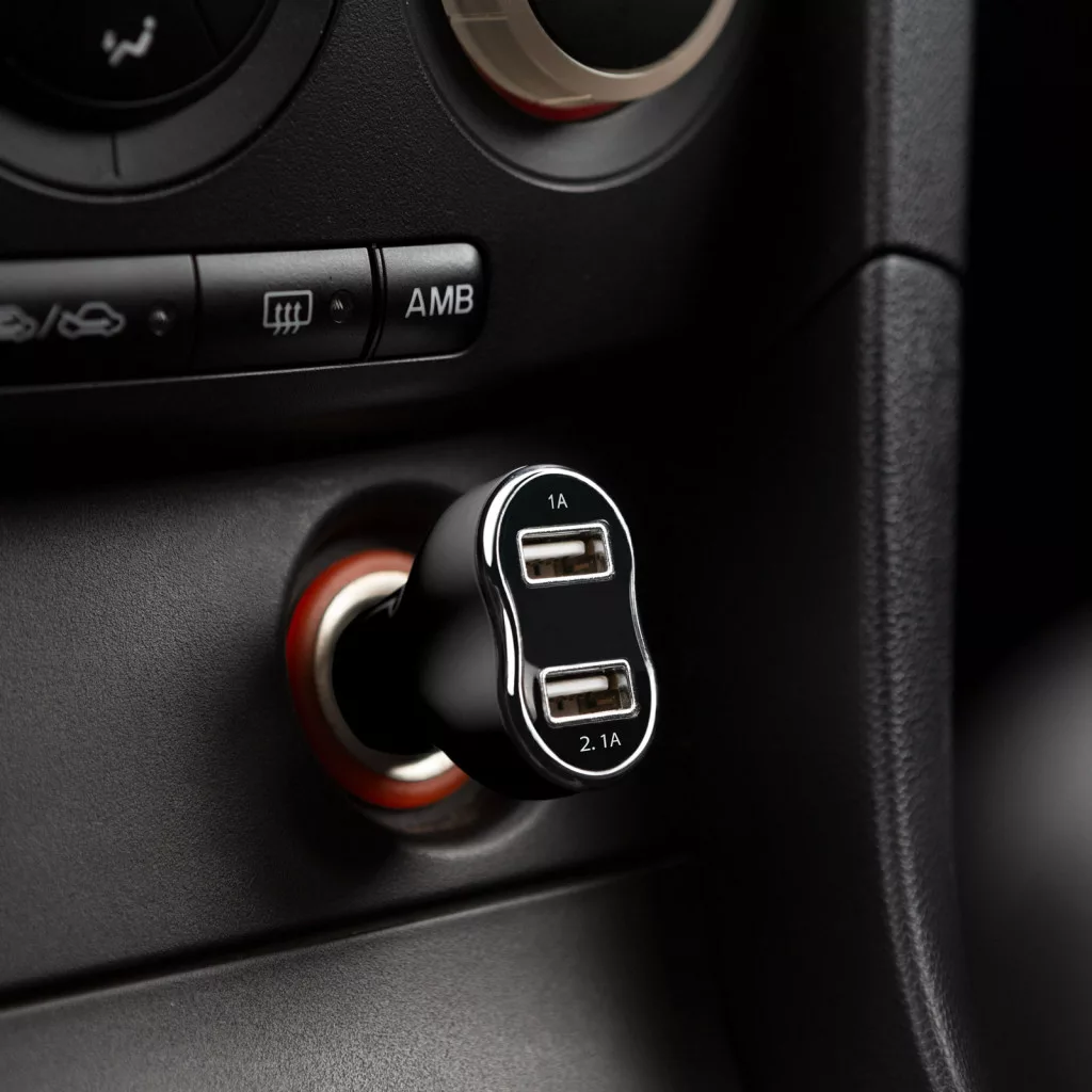 Autós szivargyújtóba dugható USB aljzat. A krómozott perem elegáns megjelenést kölcsönöz, így bármely autó belterében jól mutat. A dupla USB port lehetővé teszi két eszköz egyidejű töltését.
