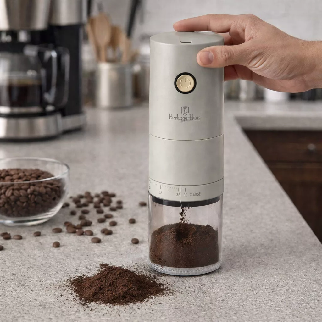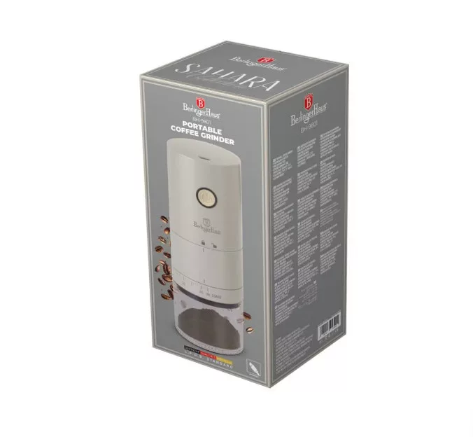 A Berlinger Haus BH9801 hordozható, újratölthető kávédaráló tökéletes választás azok számára, akik mindig frissen őrölt kávéra vágynak – akár otthon, az irodában vagy utazás közben. Kompakt és könnyű kialakítása könnyű hordozhatóságot biztosít, miközben a 38 fokozatban állítható őrlés lehetővé teszi az ideális finomság beállítását az eszpresszótól a French pressig. A tartós kerámia őrlőmechanizmus egyenletes eredményt nyújt, miközben megőrzi a kávébabok természetes aromáját és olajait. A beépített 2000 mAh-s akkumulátor hosszú üzemidőt biztosít, a Type-C töltés pedig gyors és kényelmes használatot tesz lehetővé, teljesen vezeték nélkül. Az elegáns, krémszínű Sahara dizájn modern megjelenést kölcsönöz, míg az egygombos működtetés egyszerűvé és kényelmessé teszi a használatot. A mellékelt tisztítókefének köszönhetően a karbantartás gyors és praktikus, így a daráló mindig készen áll a mindennapi kávéélményre.