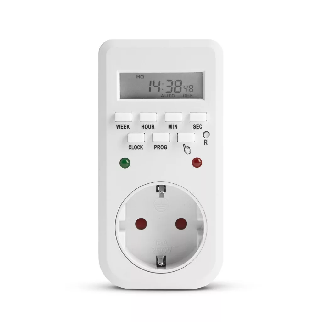 Ez az időzíthető, digitális, kapcsolóóra az Ön háztartásának is elengedhetetlen kelléke. Ne tartsa eszközeit készenléti állapotban, ezzel csökkentheti villanyszámláját és óvhatja környezetét. Egy db 250V-os dugaljjal és LCD kijelzővel rendelkezik, amely megkönnyíti a beállítást. Könnyen vezérelheti vele kerti öntözőrendszerét vagy bármilyen olyan elektromos eszközét, aminél nem szerete folyamatos áramellátást.