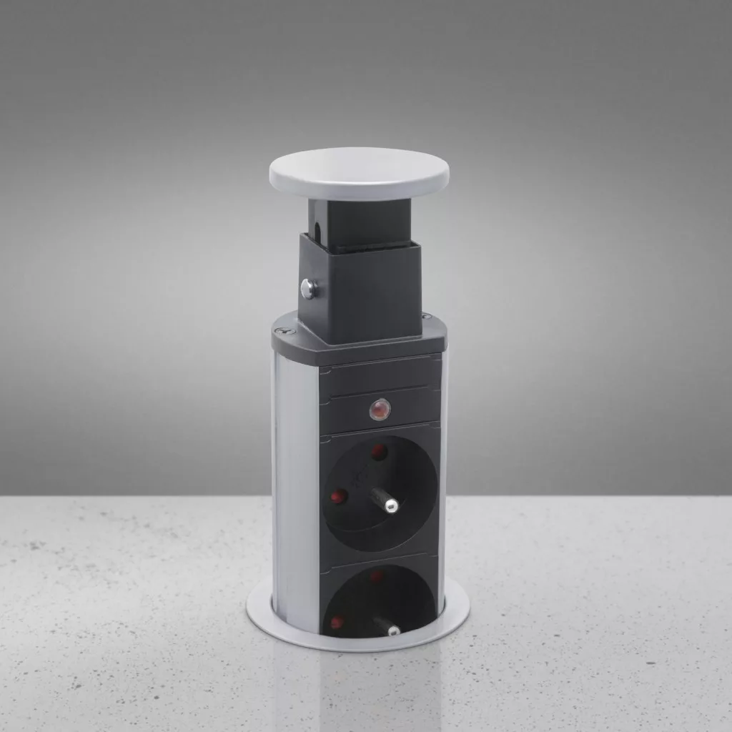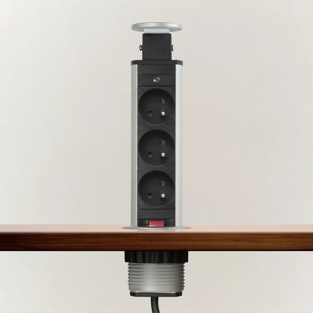 Süllyeszthető elosztó irodai és otthoni felhasználásra, fém házzal. Asztala, bútora legyen mindig elegáns és rendezett, mégis funkcionális. 3 db gyermekvédelemmel ellátott aljzattal. A rejtett elosztó kiváló megoldás lehet ha már például kész konyhával rendelkezik, de nincs elegendő konnektor a kívánt helyen. Ilyenkor falvésés és villamos hálózat bővítés nélkül, remek alternatíva lehet egy rejtett elosztó. Egy mozdulat és máris rendelkezésre áll 3 szabad konnektor. Ideális lehet olyan elektromos eszközökhöz, amit nem folyamatosan használunk, kenyérpirító, vízforraló... Ha használaton kívül vannak, a "töltőoszlop" egy mozdulattal elrejthető, ezzel is megkönnyítve például a takarítást, valamint rendezett, letisztult külsőt ad a helységnek.