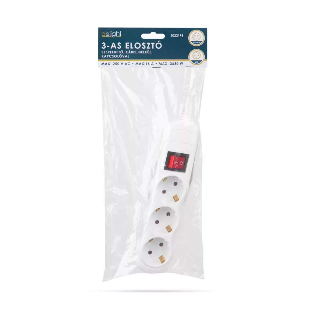 Hagyományos fehér elosztó, amely 3 gyerekvédelemmel ellátott aljzattal rendelkezik. Az elosztó szétszedhető, így lehetőség van egyedi kábelezés kialakítására.