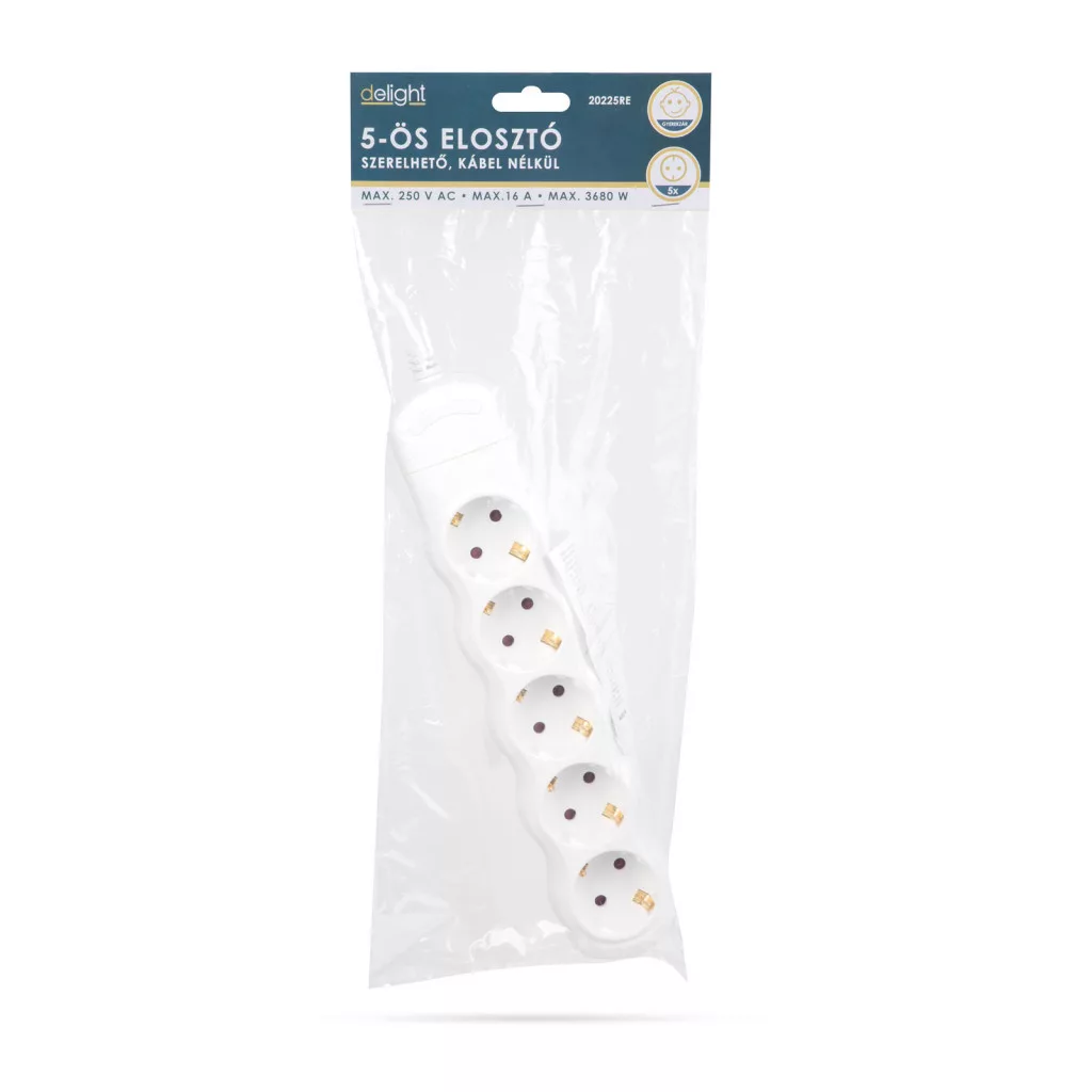 Hagyományos fehér elosztó, amely 5 gyerekvédelemmel ellátott aljzattal rendelkezik. Az elosztó szétszedhető, így lehetőség van egyedi kábelezés kialakítására.