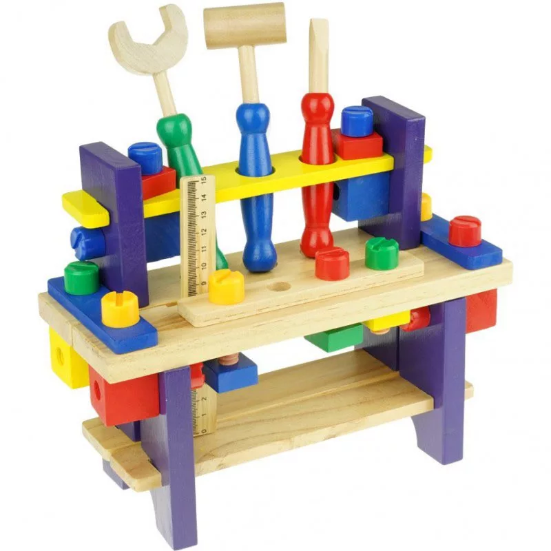 Kis ezermestereknek tökéletes ajándék ez a fából készült szerszámos pad, melyben a barkácsoláshoz szükséges eszközök találhatók. 3 éves kortól ajánljuk.