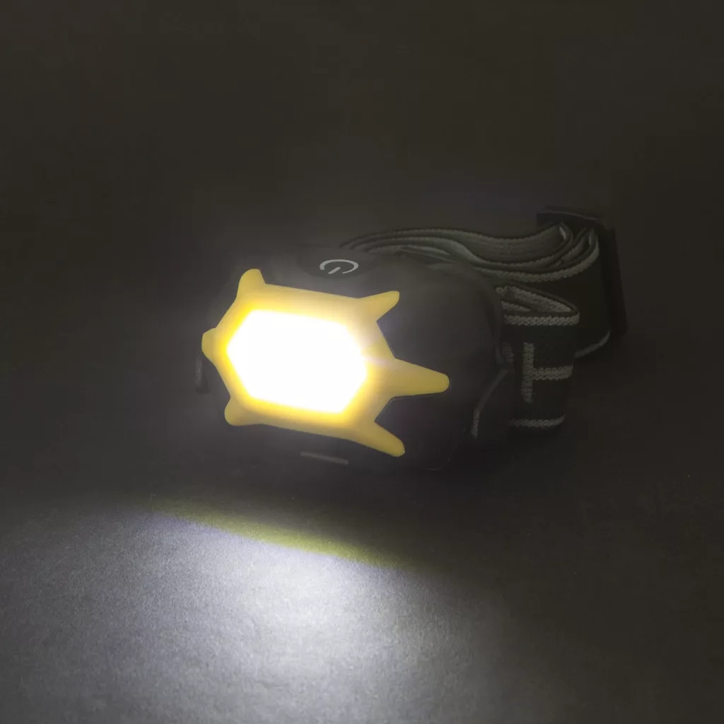 COB LED-es, érintőkapcsolós fejlámpa 3 különböző világítási funkcióval.