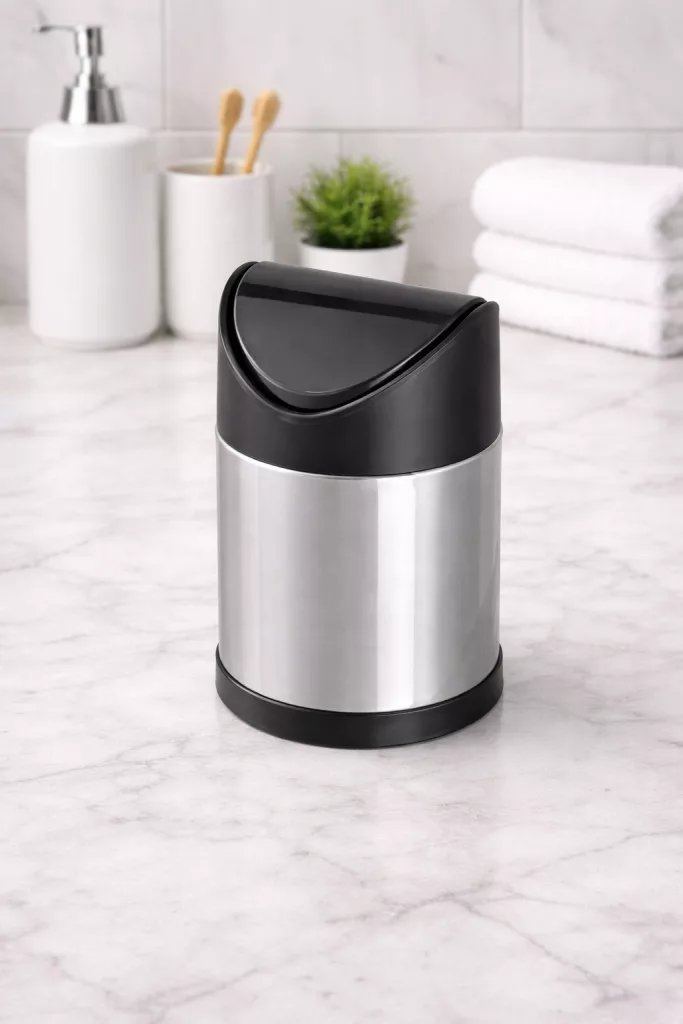 A 1,1 literes fém billenős szemetes ideális választás kisebb helyiségekbe, például fürdőszobába, irodába vagy konyhapultra. A 18,5 × 12,5 cm-es méret helytakarékos, mégis elegendő kapacitást biztosít a mindennapi hulladék gyűjtéséhez. A billenős fedél könnyű és higiénikus használatot tesz lehetővé, míg a tartós fém kialakítás hosszú élettartamot garantál. Letisztult megjelenésének köszönhetően bármilyen környezetbe jól illeszkedik.A 1,1 literes fém billenős szemetes ideális választás kisebb helyiségekbe, például fürdőszobába, irodába vagy konyhapultra. A 18,5 × 12,5 cm-es méret helytakarékos, mégis elegendő kapacitást biztosít a mindennapi hulladék gyűjtéséhez. A billenős fedél könnyű és higiénikus használatot tesz lehetővé, míg a tartós fém kialakítás hosszú élettartamot garantál. Letisztult megjelenésének köszönhetően bármilyen környezetbe jól illeszkedik.