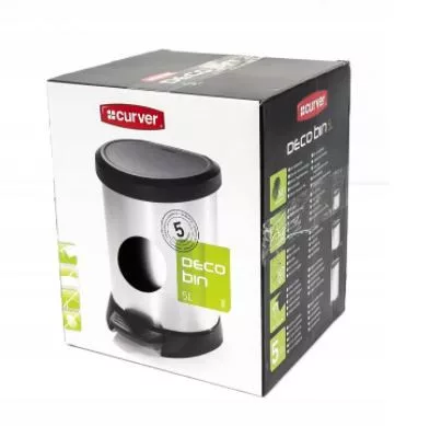Modern pedálos 5l szemetes kuka Curver Decobin típusú, egy speciális pedál segítségével nyílik meg, hogy a kezek tisztán maradjanak. A fedélszerkezet tartósan lezárt és láthatatlan marad a kosár tartalma. A kosár papírcsomagolásban van.