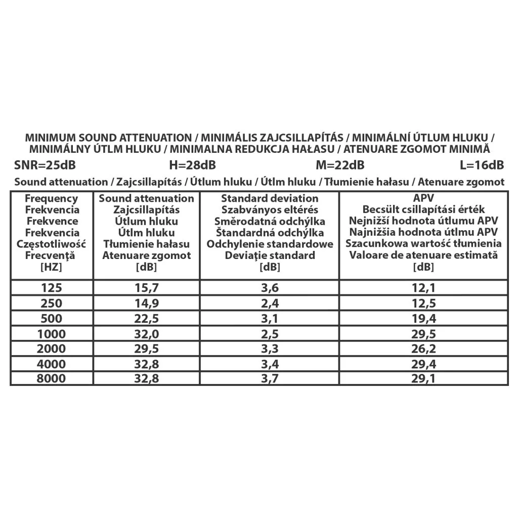 - Megfelel az EN 352-1:11.2020 fültokos hallásvédő szabványnak.