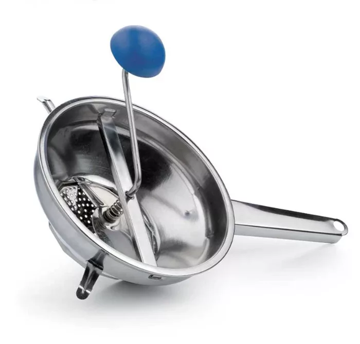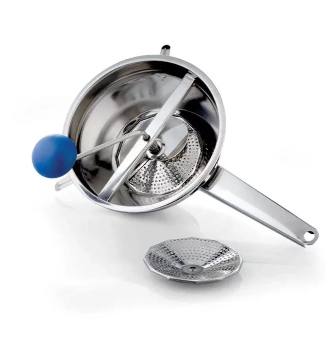 Készítsen friss, házias ízeket a rozsdamentes acél és műanyag hal- és paradicsompasszírozóval! 20 cm átmérőjű, 7,5 cm magas, 15,5 cm nyelű eszköz, két cserélhető betéttel. Tökéletes hal, paradicsom, zöldség és gyümölcs passzírozásához – ideális segítőtárs levesekhez, szószokhoz és mártásokhoz.