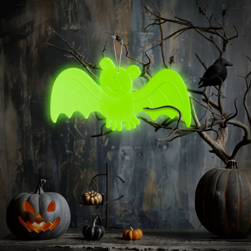 Egyre nagyobb trendnek örvend a Halloween ünneplése. Az emberek világító tököt faragnak, ijesztő sminket készítenek maguknak és nem maradhat el a lakások, közösségi helyiségek dekorálása sem! Kiváló dekorációs kiegészítő ez a foszforeszkáló dekoráció. Sötétben a formák zöld színnel foszforeszkálnak. Nincs szükség semmilyen külső tápellátásra.