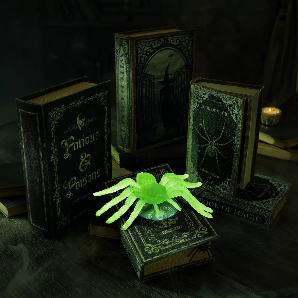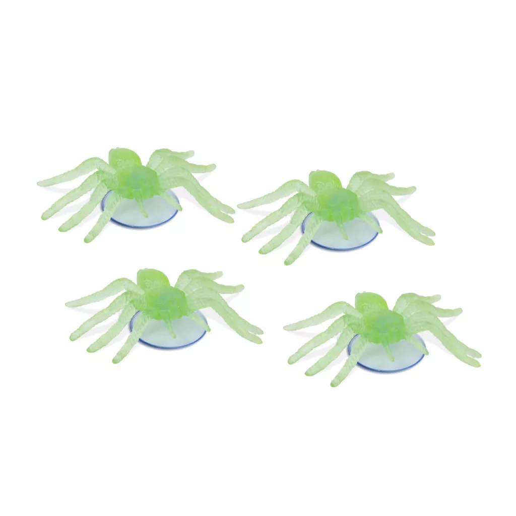 Egyre nagyobb trendnek örvend a Halloween ünneplése. Az emberek világító tököt faragnak, ijesztő sminket készíntenek maguknak és nem maradhat el a lakások, közösségi helyiségek dekorálása sem! Kiváló dekorációs kiegészítő ez a pókokból álló szett, amely alkalmas lehet például falak dekorálásánál, asztali kompozíciók összeállításánál. A tapadókorongos rögzítés széleskörű telepítést tesz lehetővé. A pókok fénnyel feltöltődnek, sötétben zöld színnel világítanak, foszforeszkálnak. Nem szükséges külső tápellátás.