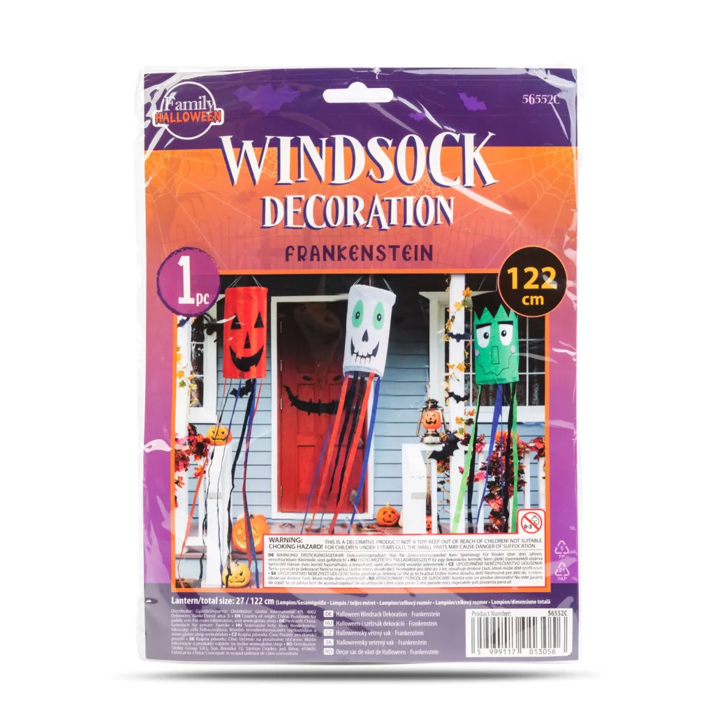 Tegye varázslatossá a Halloween-i dekorációt ezzel a szórakoztató szélzsákkal! A szélzsák, Frankenstein dizájnnal rendelkezik, mely azonnal feldobja az ünnepi dekorációt. Az élénk zöld szín és a horrorregény főszereplője tökéletes Halloween-i atmoszférát teremt.