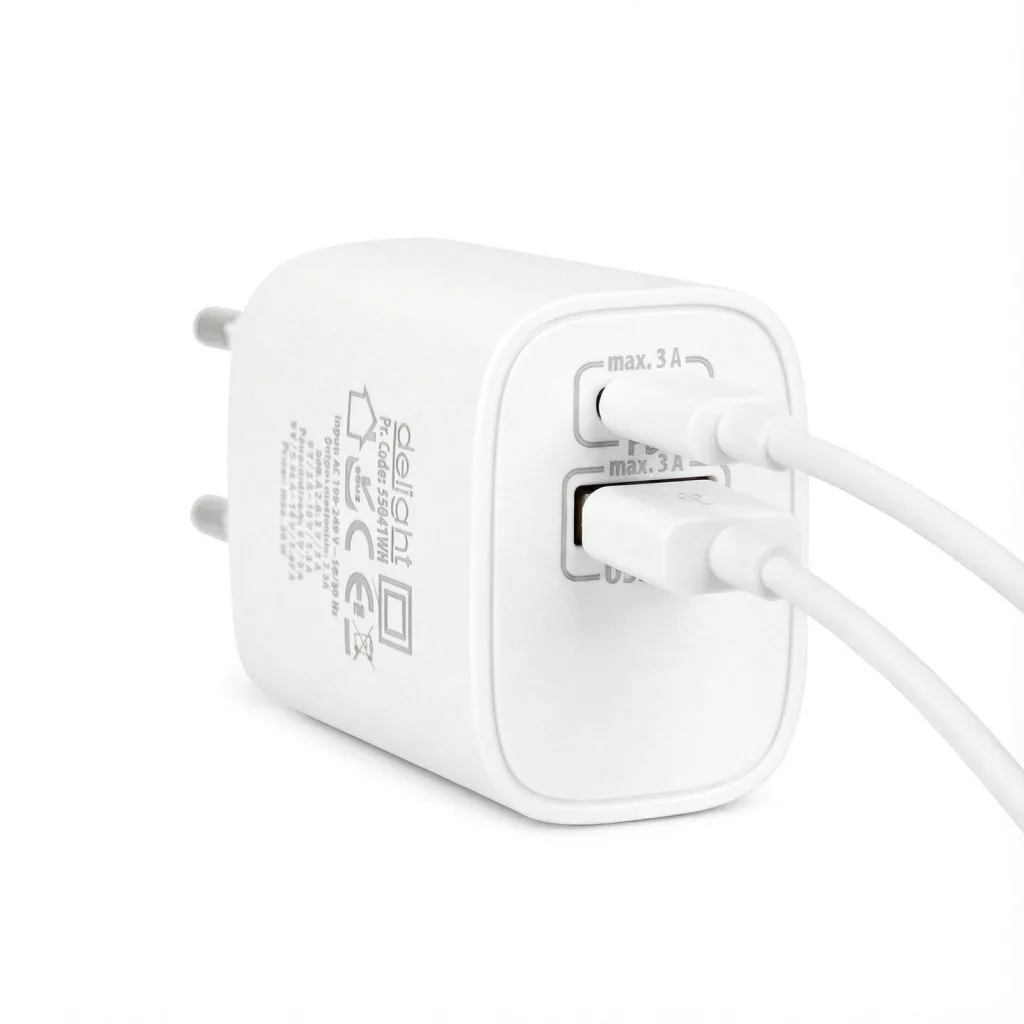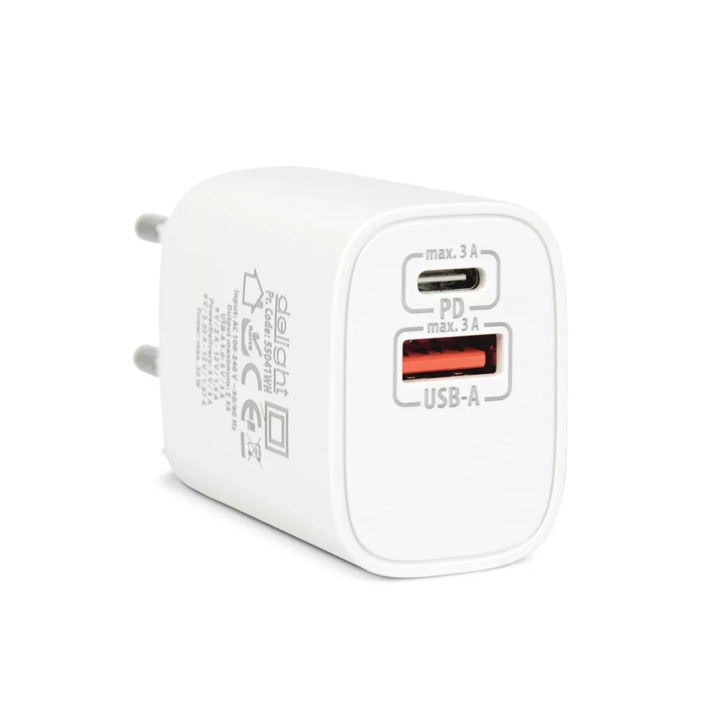 *A legújabb telefonok USB-C mellett úgynevezett PD (PowerDelivery) támogatással is rendelkeznek. Pl.: iPhone, Google Pixel, Samsung egyes készülékei... A gyorstöltés sebességét a töltőfej és a csatlakoztatott készülék együttesen határozzák meg, függ a csatlakoztatott készülék típusától és akkumulátorának pillantnyi energiaszintjétől is! Hagyományos (PD nélküli) USB-C csatlakozóval rendelkező mobiltelefonokkal is használható. Notebookok töltésére nem alkalmas, csatlakoztatás előtt tájékozódjon a telefonja, tabletje kompatibilitásával kapcsolatban. | Csatlakozók: | Type-C + USB-A |