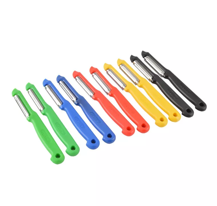 A 10 darabos hámozó szett műanyag és rozsdamentes acél felhasználásával készült, egy szettben 10 db hámozót tartalmaz, melyek egyenként 16,5 cm hosszúak, 1 cm vastagok, 5 cm hosszú pengével rendelkeznek, a teljes szett súlya 191 g, tisztítása semleges folyékony mosogatószerrel ajánlott, karcolást okozó eszközök használata nélkül, ideális uborka, burgonya, répa és paradicsom hámozásához, valamint aprításához.