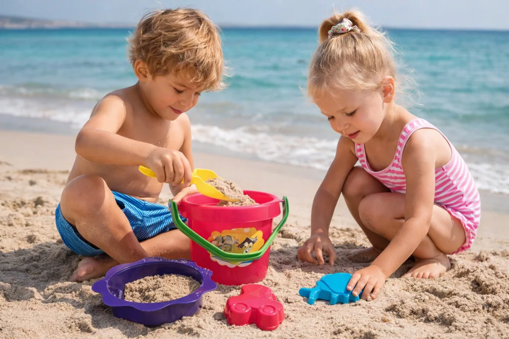Nagy vödrös homokozó készlet. Homokvár építéshez, strandoláshoz remek szórakozást nyújt a gyermekek részére. Ez a 6 db-os nagy homokozó készlet tartalmaz 1db homokozó vödröt, 2db homokozó formát, 1db gereblyét, 1db lapátot, 1db szitát. Szuper választás kezdő homokozószettnek! Méret: 24X24X33 CM