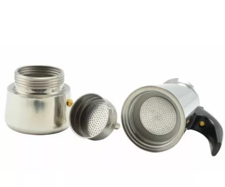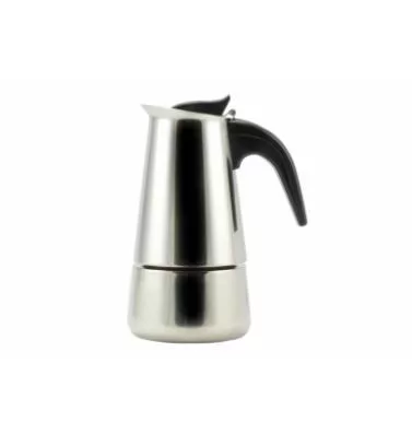 Klasszikus kotyogós rozsdamentes kávéfőző műanyag fekete nyéllel, ami nem veszi át a hőt. 4 csésze kávé elkészítésére alkalmas egy időben.Használható: gáz-, kerámialapos -, elektromos-tűzhelyen egyaránt.