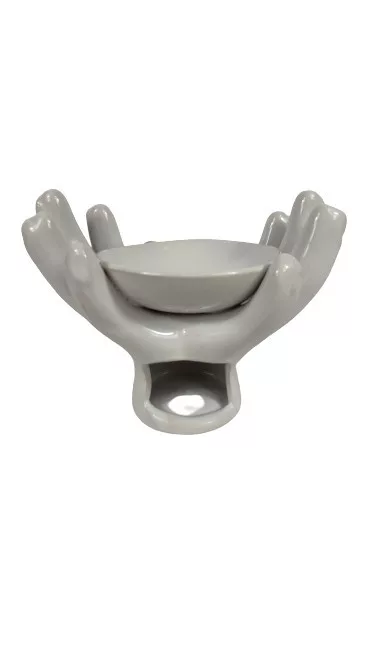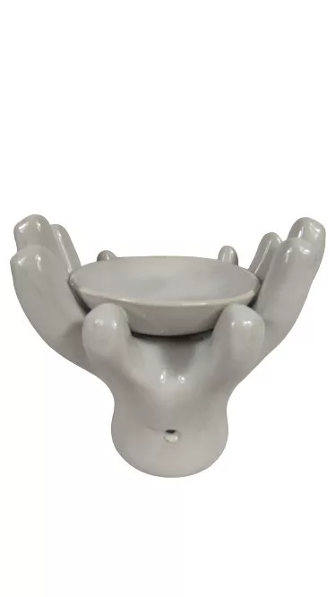 Egészen különleges hangulatot ad a szobának ez a kéz alakú kerámia aromamécses tartó, melynek felső tartójába bármilyen illóolaj csepegtethető. A termék a használat során áthevül. Teamécsessel működik, amit a csomag nem tartalmaz.