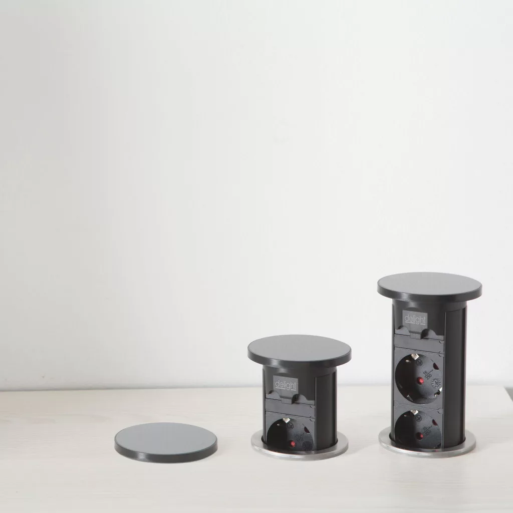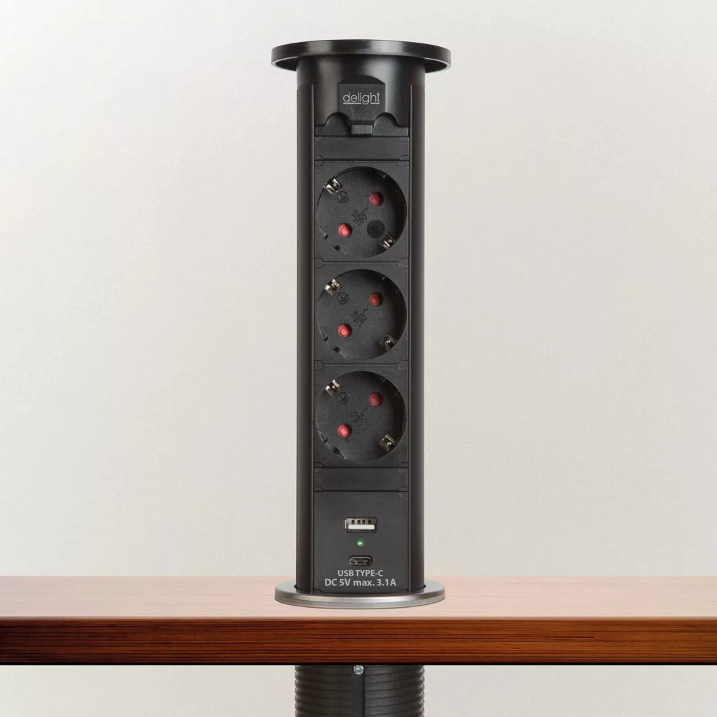 Motorosan süllyeszthető rejtett elosztó irodai és otthoni felhasználásra, fém házzal, 3 db gyermekvédelemmel ellátott hálózati aljzattal, dupla USB töltőegységgel. A legtöbb felületbe és design-ba beleillő kialakítás, függőleges beépítési lehetőség mérsékelten vízhatlan kezelőfelület.
