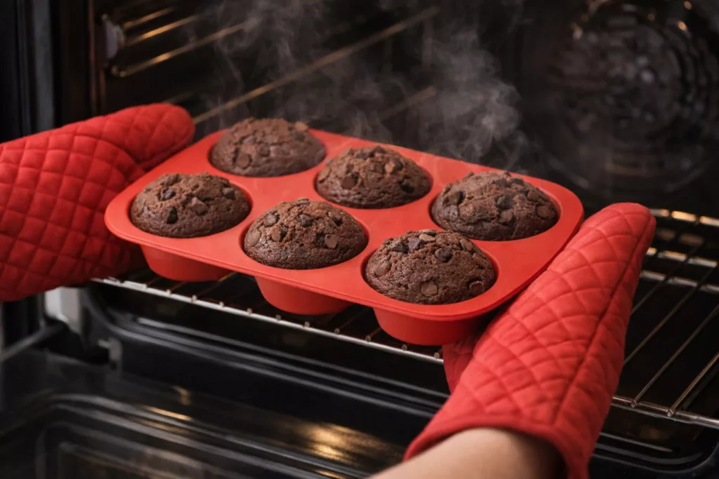 Ez a szilikon muffinsütő forma egyszerre 6 adag elkészítésére alkalmas, kerek formájú, és kiválóan használható házi muffinokhoz vagy kisebb süteményekhez. Sütőben használható, 230 °C alatti hőállósággal, valamint mosogatógépben mosható, így a tisztítása is egyszerű. Mérete: 27,5 cm hosszú, 18 cm széles, 3,3 cm magas, rugalmas anyaga pedig megkönnyíti a sütemények kivételét.