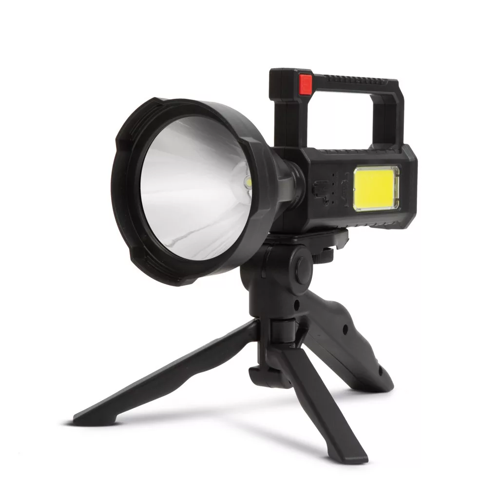 Strapabíró kialakítású, kisméretű, mégis óriási fényerővel rendelkező keresőreflektor, amely akkumulátoros működésének köszönhetően hosszantartó működést garantál. A nagyteljesítményű, extra fényerővel rendelkező, XPE50-es CREE LED, akár 200 méter szúrófényt is képes kibocsátani magából, így minden körülmények között számíthat rá. Az ergonomikus ház IP55 védelemmel rendelkezik, így esős, párás időben is kiváló szolgálatot nyújt. A lámpa kényelmes használatát kétféle csúszásmentes, bordázott fogantyú garantálja, mely közül az egyik háromlábú tripoddá is alakítható, így bárhová elhelyezve állandó fényként világítja meg a munkaterületet. Ideális felszerelése lehet túrázóknak, vadászoknak, horgászoknak, keresőcsapatoknak, biztonságiőröknek vagy akár hatóság embereinek is.