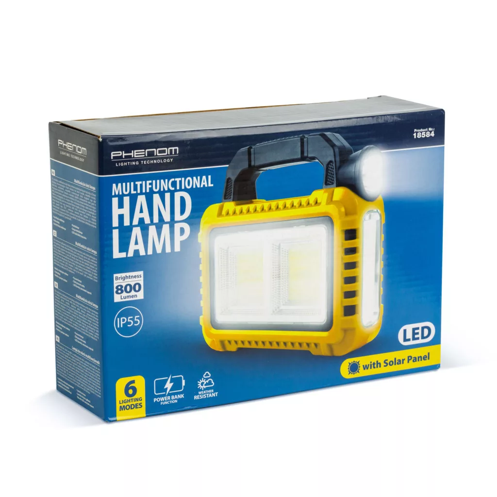 Ez a sokoldalú, multifunkciós kézi lámpa minden körülmények között biztosítja az Önnek szükséges fénymennyiséget. Kiváló választás ház körüli munkák, szabadtéri munkák, barkácsolás, autószerelés, szabadidős tevékenységek, túrák, horgászat vagy akár kempingezés alkalmával. Tartozék a különálló, kábellel csatlakoztatható szolár panel és kettő, szintén kábeles csatlakozással rendelkező LED izzó, amelyek lehetővé teszik, hogy a hatékony energiagyűjtés és a világítás térben elhatárolva történjen. Ideális olyan helyen történő felhasználása, ahol nincs kiépített hálózati világítás, de szükséges a megvilágítás. A lámpa központi része nagy kapacitású, 3600 mAh-s akkumulátort tartalmaz, amelyet szolár panelről vagy USB-C csatlakozón keresztül lehet feltölteni. A feltöltött akkumulátorból, a beépített USB-A csatlakozón keresztül lehetőség van külső eszközök tápellátására is, így powerbank-ként is használható. Az akkumulátor töltöttségi szintjének kijelzéséről visszajelző LED gondoskodik.