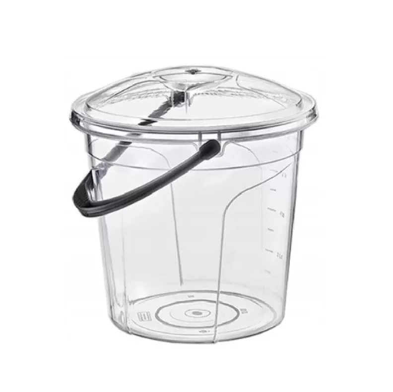 Átlátszó fedeles vödör, az oldalán mércével. Kényelmes fogást biztosító füllel van ellátva. Magas minőségű műanyagból készült. Mérete: 37x37 cm. Űrtalralma: 20 liter