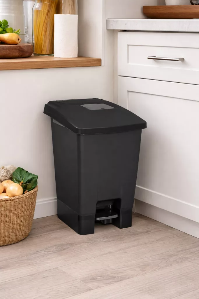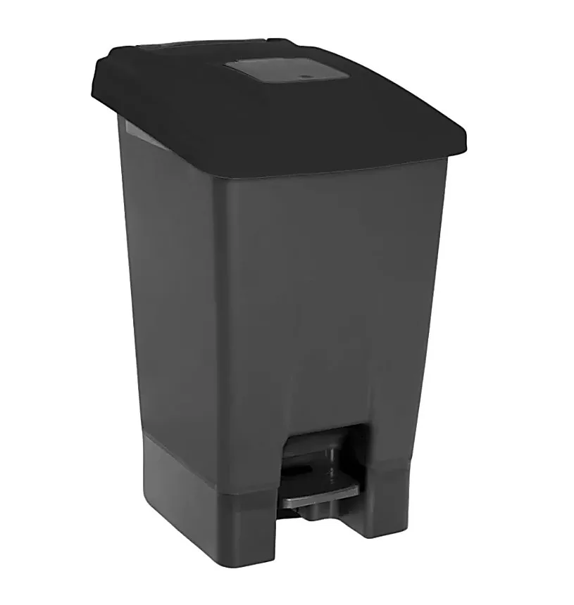 A 100 literes pedálos szelektív hulladékgyűjtő szemetes praktikus és esztétikus megoldás otthonokba, irodákba, közösségi terekbe vagy üzletekbe. Az antracit test és fekete tető elegáns megjelenést biztosít, miközben a nyomófedeles nyílás segít csökkenteni a szagok kijutását és gyors hulladékbedobást tesz lehetővé. A nagy, 100 literes kapacitás miatt ideális választás forgalmas helyekre, ahol fontos a hatékony és higiénikus hulladékkezelés. A pedálos működtetésnek köszönhetően kéz érintése nélkül nyitható, ami különösen higiénikus megoldás konyhában, spejzban vagy irodai környezetben. A szemetes eco anyagból készült, így a környezettudatos hulladékkezelést is támogatja. A beépített kerekek lehetővé teszik a könnyű mozgatást és az egyszerű tisztítást. Méret: 50,5x60x83 cm Űrtartalom: 100 liter