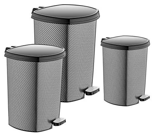 Praktikus és elegáns 3 darabos pedálos szemetes szett, amely különböző méreteinek köszönhetően tökéletes megoldást kínál a lakás több helyiségébe. A modern fonott fém mintázat stílusos megjelenést ad, miközben a pedálos nyitás higiénikus és kényelmes használatot biztosít. A különböző méretű szemetesek ideálisak konyhába, fürdőszobába, irodába vagy hálószobába is. A pedál segítségével érintés nélkül nyitható fedél segít a tiszta és higiénikus használatban. Szett tartalma: 1 db 20 literes pedálos szemetes, 1 db 11 literes pedálos szemetes, 1 db 6 literes pedálos szemetes. 3DB SZEMETES ŰRrtartalom: 20L méretei:32X36X39CM, 11L méretei:26X29,5X34 cm, 6L méretei:21X23,5X26 cm Termék jellemzők: modern fonott fém mintás design pedálos nyitás a higiénikus használatért több méret egy szettben stabil és praktikus kialakítás könnyen tisztítható felület