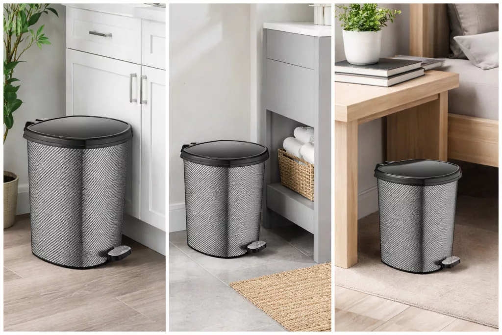 Pedálos szemetes 3 db-os szett szövött fém minta