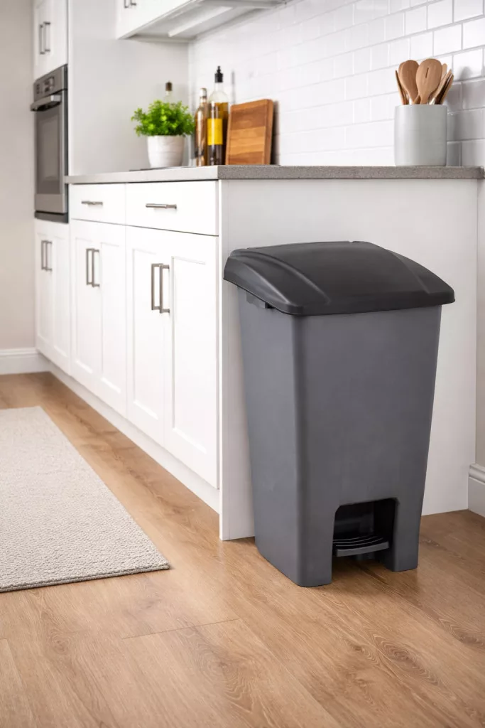 A 70 literes pedálos szelektív hulladékgyűjtő szemetes praktikus és esztétikus megoldás otthonokba, irodákba, közösségi terekbe vagy üzletekbe. Az antracit test és fekete tető elegáns megjelenést biztosít, miközben a nyomófedeles nyílás segít csökkenteni a szagok kijutását és gyors hulladékbedobást tesz lehetővé. A nagy, 70 literes kapacitás miatt ideális választás forgalmas helyekre, ahol fontos a hatékony és higiénikus hulladékkezelés. A pedálos működtetésnek köszönhetően kéz érintése nélkül nyitható, ami különösen higiénikus megoldás konyhában, spejzban vagy irodai környezetben. A szemetes eco anyagból készült, így a környezettudatos hulladékkezelést is támogatja. A beépített kerekek lehetővé teszik a könnyű mozgatást és az egyszerű tisztítást. Méret: 45,5x53x74,3 cm Űrtartalom: 70 liter