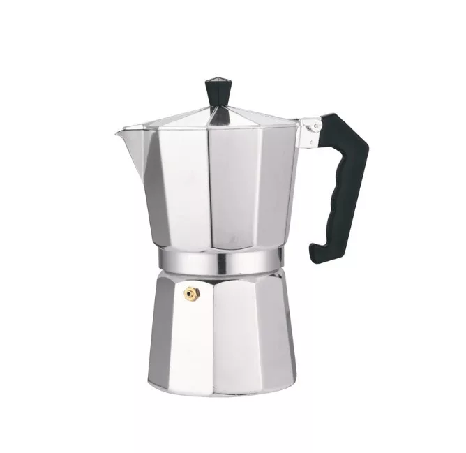 Alumíniumból és műanyagból készült kávéfőző, melynek talpátmérője kb. 8,2 cm, teljes magassága kb. 19 cm, csőrrel és füllel együtt mért szélessége kb. 16,5 cm, súlya körülbelül 410 g; indukciós-, gáz-, elektromos- és kerámialapos tűzhelyen is használható, tisztítása semleges folyékony mosogatószerrel ajánlott, kerülni kell a karcoló hatású eszközöket és szereket, első használat előtt hideg vízzel ki kell tisztítani, majd egy–két adag kávét lefőzni és kiönteni, a tisztításhoz pedig tiszta víz és szódabikarbóna alkalmazása javasolt.
