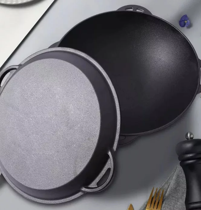 A Perfect Home Öntöttvas 3in1 lábas / bogrács / szeletsütő 37 cm egy sokoldalúan használható, masszív kivitelű főzőedény, amely ideális választás szabadtéri és konyhai használatra egyaránt. Kiváló minőségű öntöttvasból készült, felülete növényi olajjal kezelt. Használható minden típusú tűzhelyen – gáz-, kerámialapos-, elektromos- és indukciós főzőlapon –, valamint szabad tűzön, sütőben, parázson és kemencében is. A biztonságos használat érdekében minden esetben javasolt sütőkesztyű alkalmazása. Tisztítása egyszerű: minden használat után meleg, mosószeres vízzel mossa el, alaposan szárítsa meg, majd a rozsdásodás elkerülése érdekében vékonyan kenje be zsírral. Első használat előtt el kell távolítani a rozsdásodást gátló növényi olajréteget. Ehhez mossa el az edényt forró vízben, semleges folyékony mosogatószerrel, törölje teljesen szárazra, majd kenje ki zsírral vagy szalonnával, és alaposan hevítse fel. A termék ismert még az alábbi neveken is: Kazan kemence, piláf/pilaf/plov készítő edény, holland kemence, holland sütő vagy Dutch Oven.Mérete: 37,3 cm széles fülek nélkül; 42,5 cm széles a fülekkel együtt; 18 cm magas fedővel együtt.
