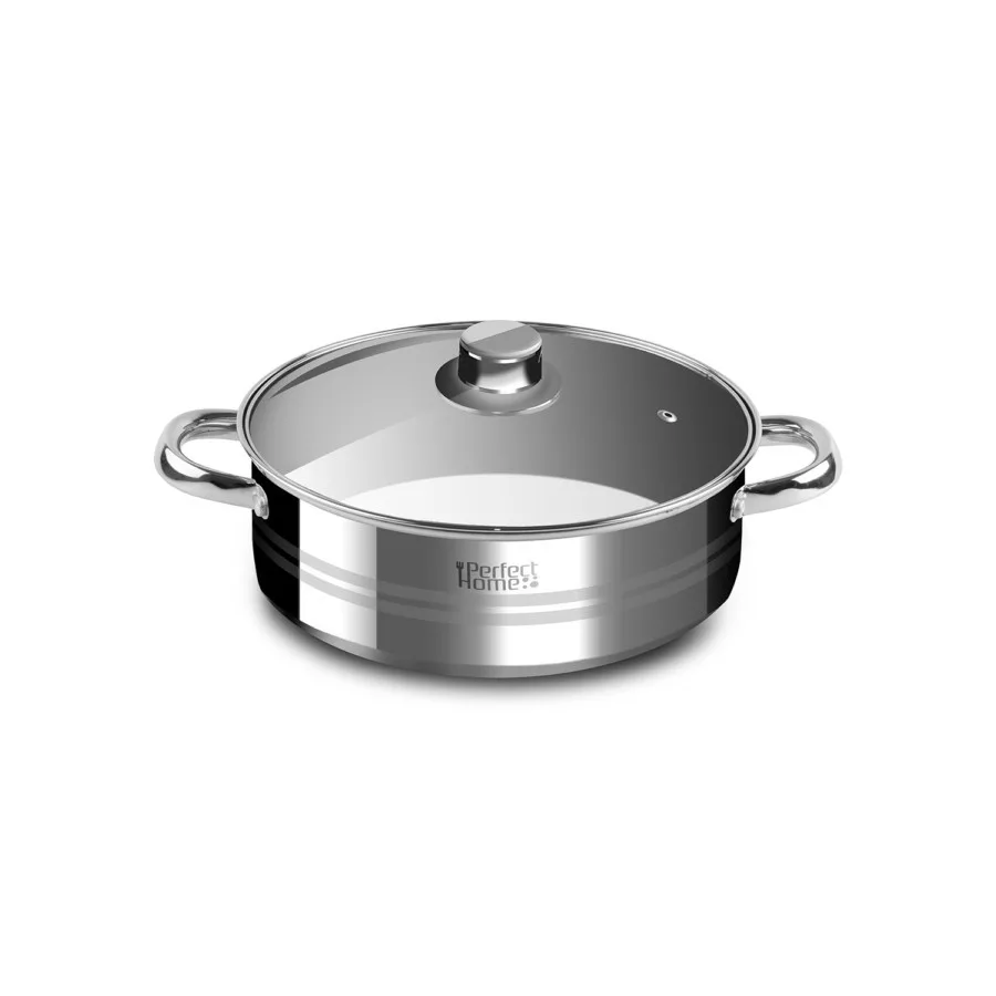 A Perfect Home rozsdamentes szeletsütő lábas kiváló minőségű konyhai eszköz, amelyben elkészítheted a legízletesebb sülteket, húsokat és egyéb ételeket. A lábas méretei: külső átmérője: 23,5 cm, belső átmérője: 22,5 cm, szélessége fülekkel: 32,3 cm, magassága fedő nélkül: 8,3 cm, magassága fedővel: 12,5 cm. Egyaránt használható gáz-, kerámialapos -, elektromos- és indukciós tűzhelyen is.
